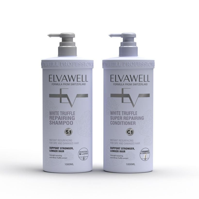 - Dầu gội phục hồi hư tổn siêu suôn mượt Elvawell chống lão hóa da đầu, giúp tóc mọc nhanh, chắc khỏe.