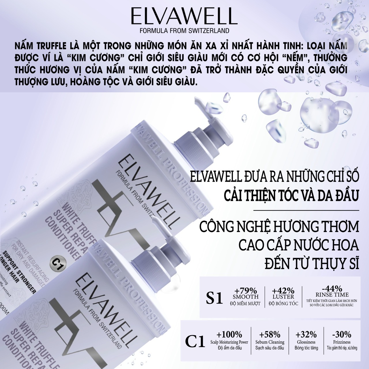 Elvawell có công thức giải quyết da đầu dầu SẠCH SÂU - DUY TRÌ SẠCH LÂU TẬN 4-5 HÔM.