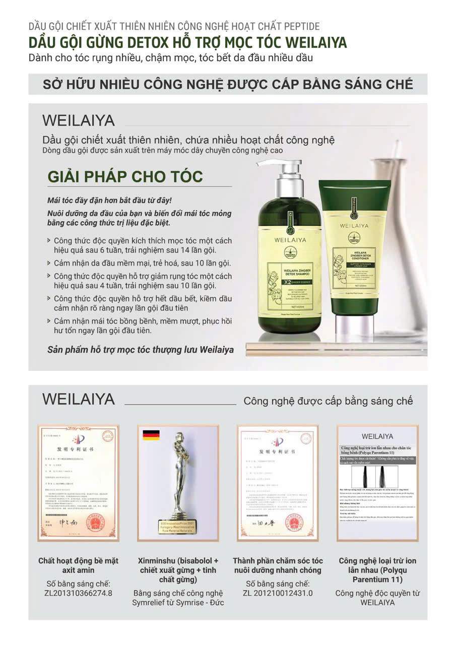 Bộ dầu gội xả gừng detox hỗ trợ mọc tóc Weilaiya Luxury giúp tóc giảm dầu, mềm mịn