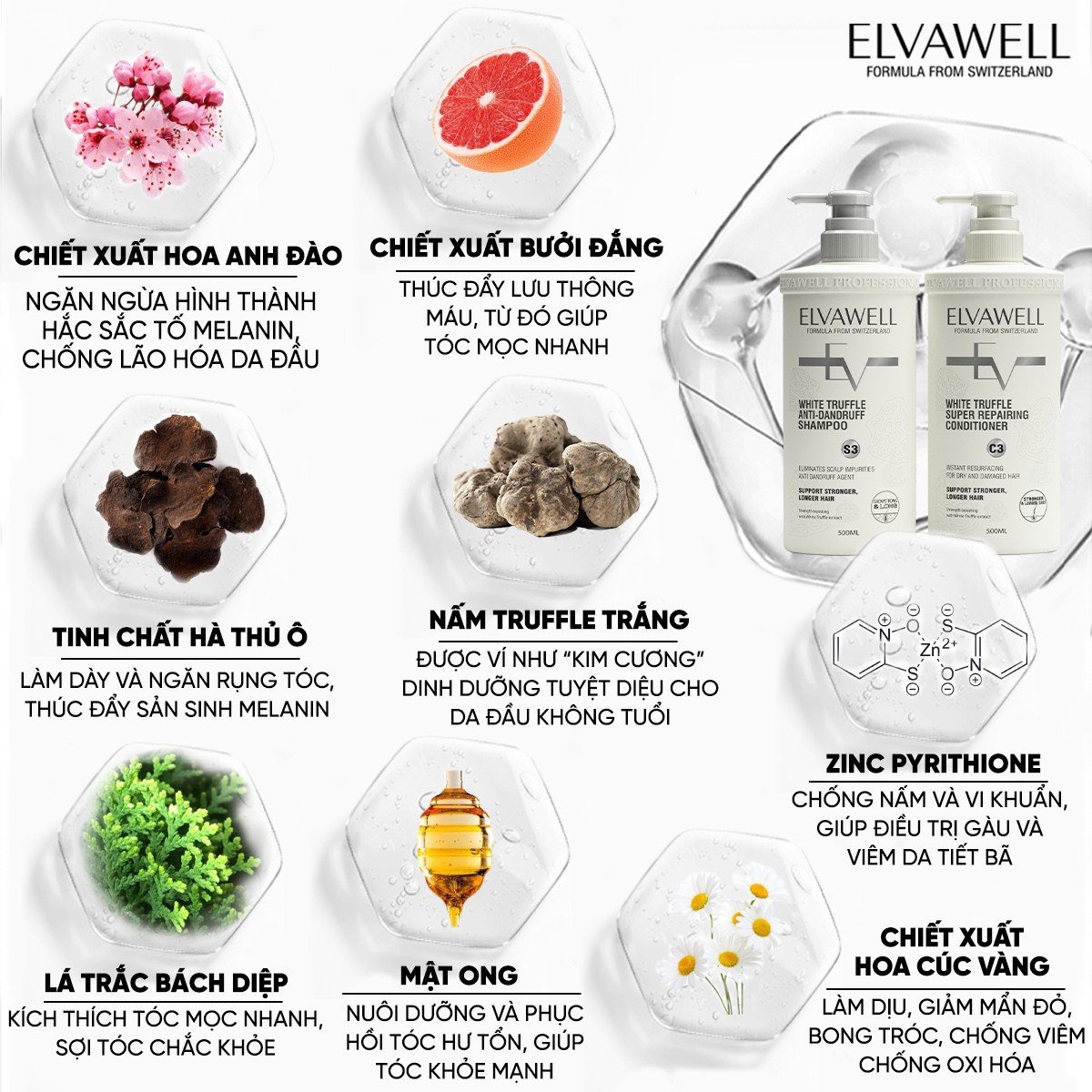 Dầu gội phục hồi hư tổn siêu suôn mượt Elvawell - Thành phần cao cấp & đắt đỏ